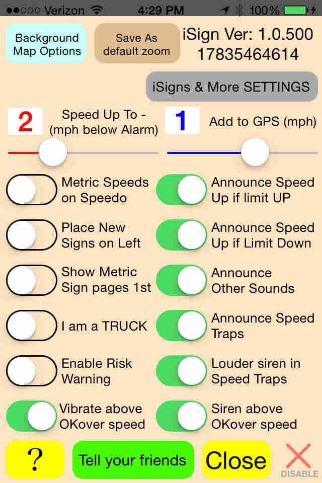 You can also change the number that SpeedMinder tells you to accelerate to or slow down to when you approach a sign. This is used because most people can't just accelerate to 1 mph below an alarm and stay there. Even your cruise control needs a couple mph cushion because it wanders a little going up and down hills.